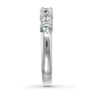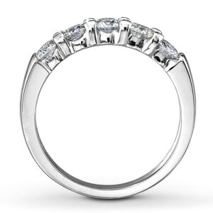 This romantic diamond anniversary band features five sparkling round diamonds with a total diamond weight of one carat, set in 14K white gold. Say "I love you now and always" with this fine jewelry anniversary ring.