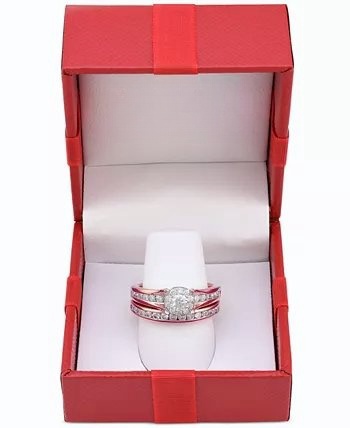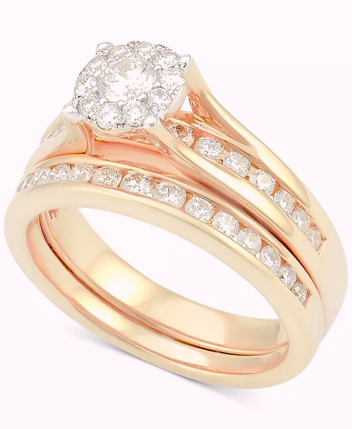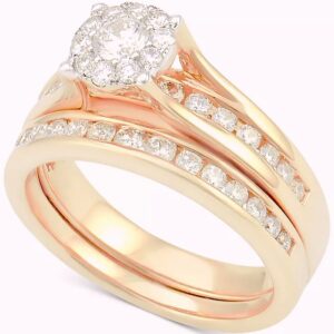 It’s all about the elegance with this romantic round-cut diamond bridal set (1 ct. t.w.) featuring a stunning engagement ring and matching wedding band adorned with channel-set diamonds. Crafted of 14k white, yellow or rose gold.