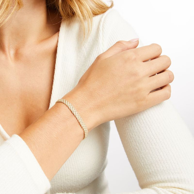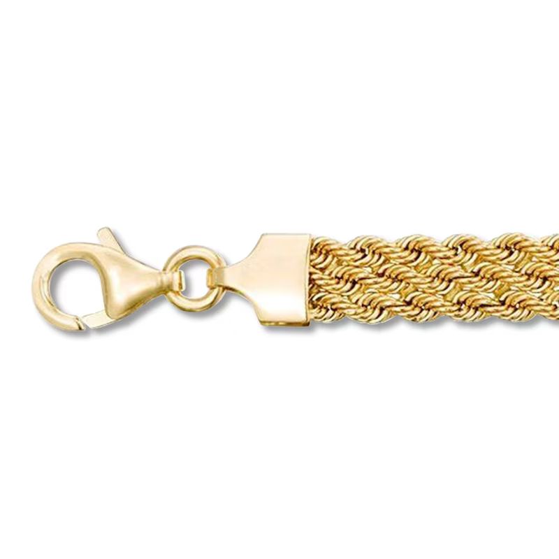 This Italian-made bracelet features a beautiful multi-strand rope chain design, perfect for layering or wearing alone. The 7.5-inch bracelet is fashioned in 14K yellow gold and secures with a lobster clasp.