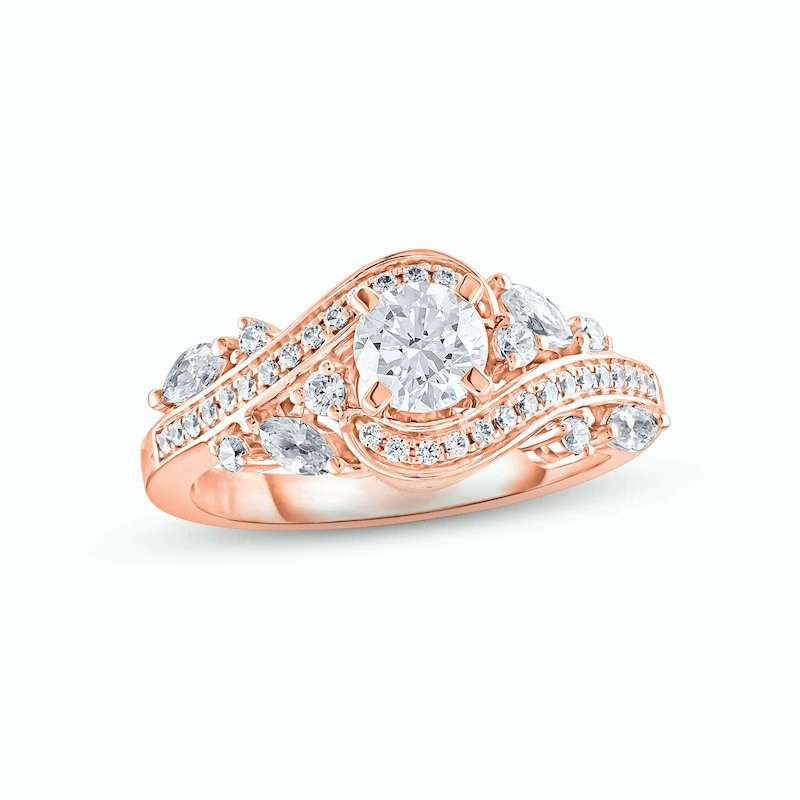 Diamond Engagement Ring 1 ct tw Round & Marquise-cut 14K Rose Gold